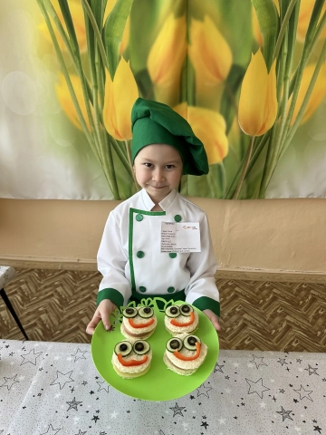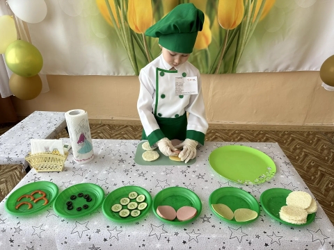 Воспитанница старшей группы № 1 Намазова София приняла участие в V Международном чемпионате «СтартПрофи» в номинации «Поварское дело». Конкурсное задание представляло собой профессиональную пробу в приготовлении блюда. Данный конкурс играет огромное значение в ранней профориентации дошкольников. он включает в себя приготовление и подачу блюда, а также демонстрацию необходимых навыков и умений. София прекрасно справилась с заданием. приготовив бутерброды канапе под названием «Смайлики».